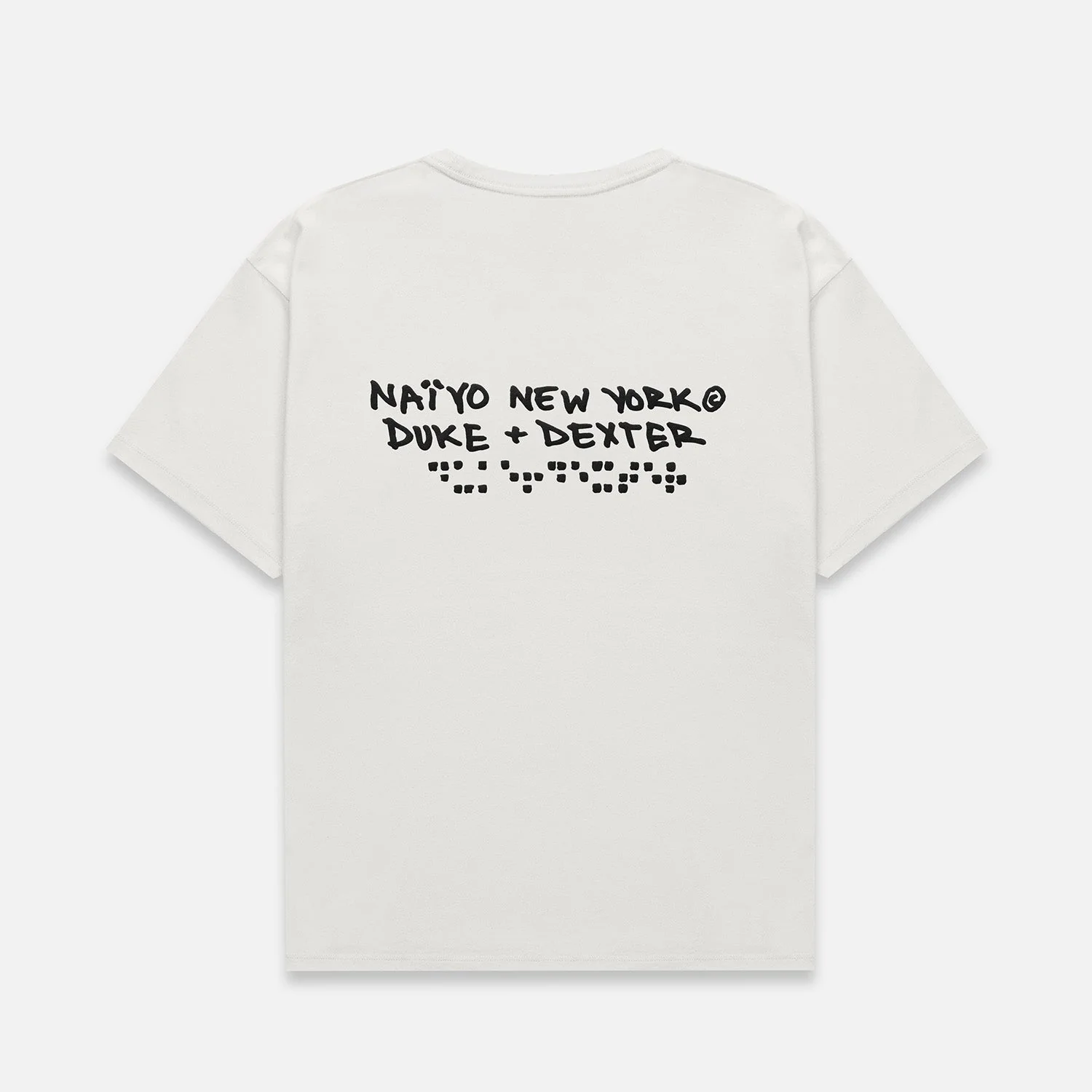 The NY White T-Shirt combines our love of vintage with the design language of our collaborator, NAĂYO. Itâs cut for a boxy fit from worn-in cotton-jersey and detailed with puff-print artwork at the front and back, including a script âNew Yorkâ across the chest.
