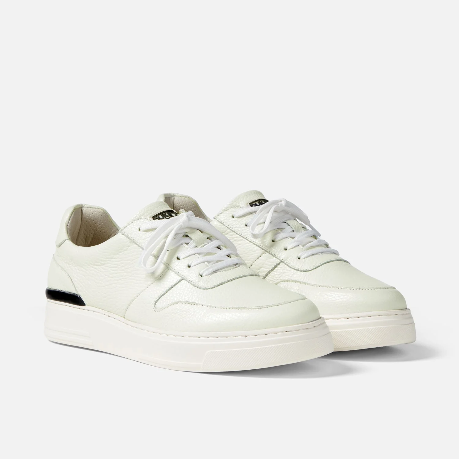 Please, no more runners. Ritchie is the sneaker that sets the pace to slow and steady. Weâve put comfort and versatility into the heart of this shoe, with an entirely custom sole unit, as well as a seamless heel section that's built with extra padding to really cushion your foot when youâre putting the miles down on the pavement. Handmade using a vintage white Italian pebble grain leather, weâve finished this sneaker with our D+D sneaker branding and bespoke monochrome heel panel.